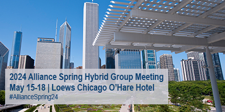 The 2024 Alliance Spring Hybrid Group Meeting, Wednesday, May 15-Saturday, May 18, will take place in Chicago at the Loews Chicago O'Hare Hotel and virtually.